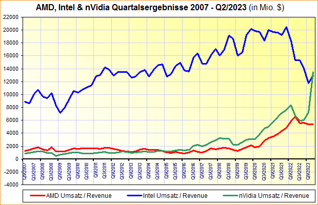 AMD, Intel & nVidia Quartalsergebnisse 2007 bis Q2/2023