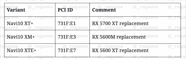 AMD Navi 10 (neue) Chip-Varianten