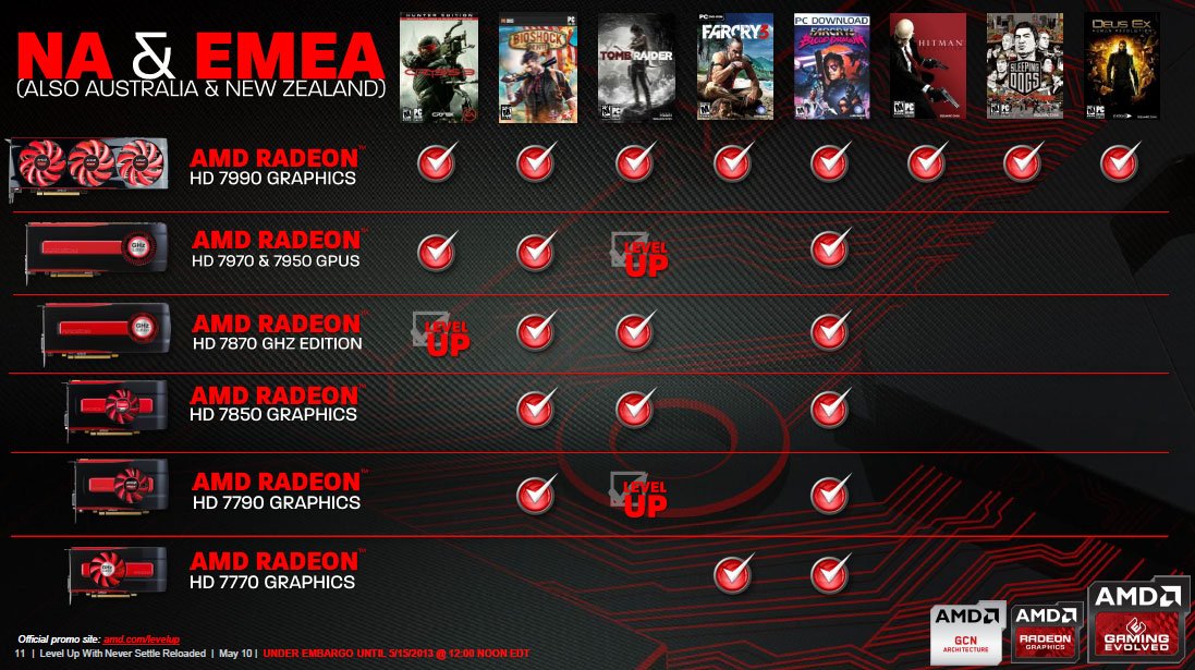 AMD "Never Settle Reloaded" Spielebundle-Programm mit "Level Up" Aufstockung