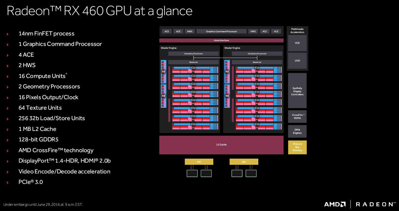 AMD Radeon RX 460 Spezifikationen & Blockdiagramm