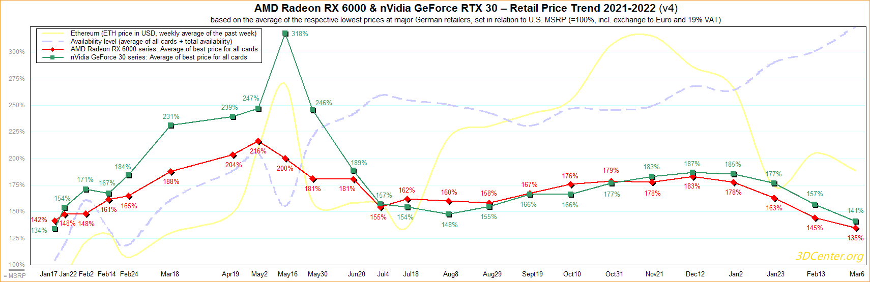 AMD Radeon RX 6000 & nVidia GeForce RTX 30 – Straßenpreis-Preisentwicklung 2021-2022 v4