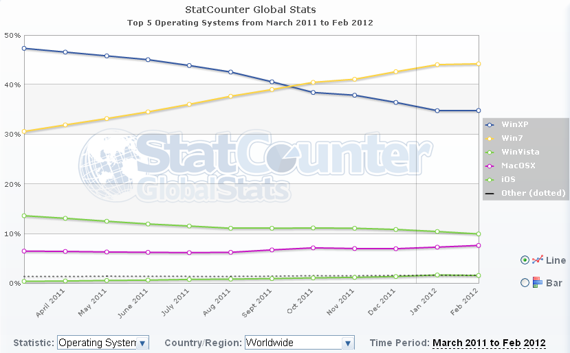 Betriebssystem-Verbreitung März 2011 bis Februar 2012 @ StatCounter