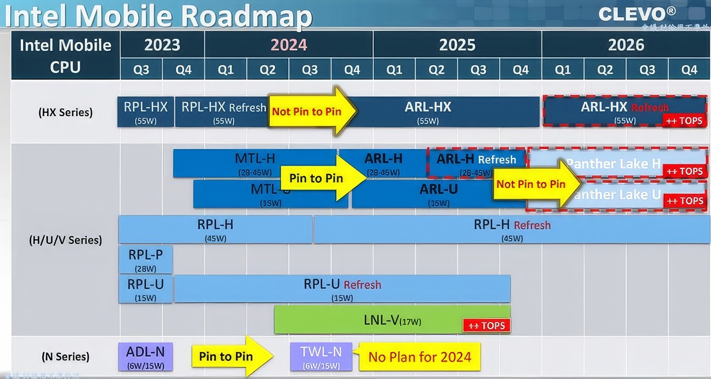 Clevo Intel Mobile-Prozessoren Roadmap 2023-2026