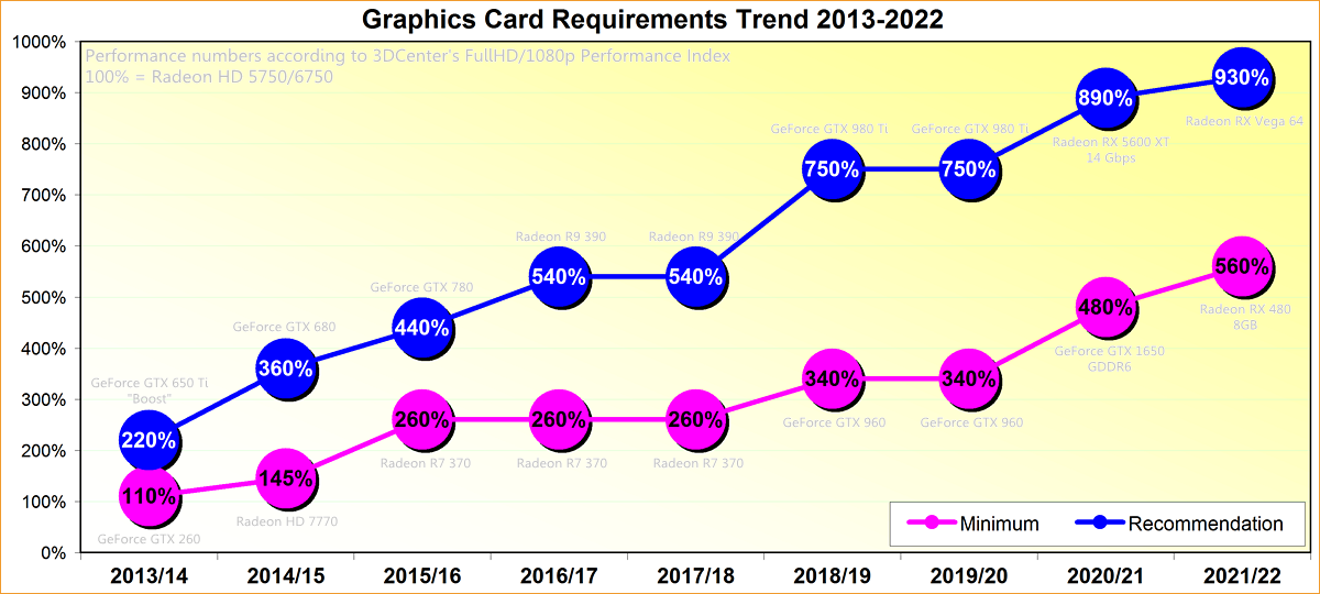 Entwicklung der Grafikkarten-Systemanforderungen 2013-2022