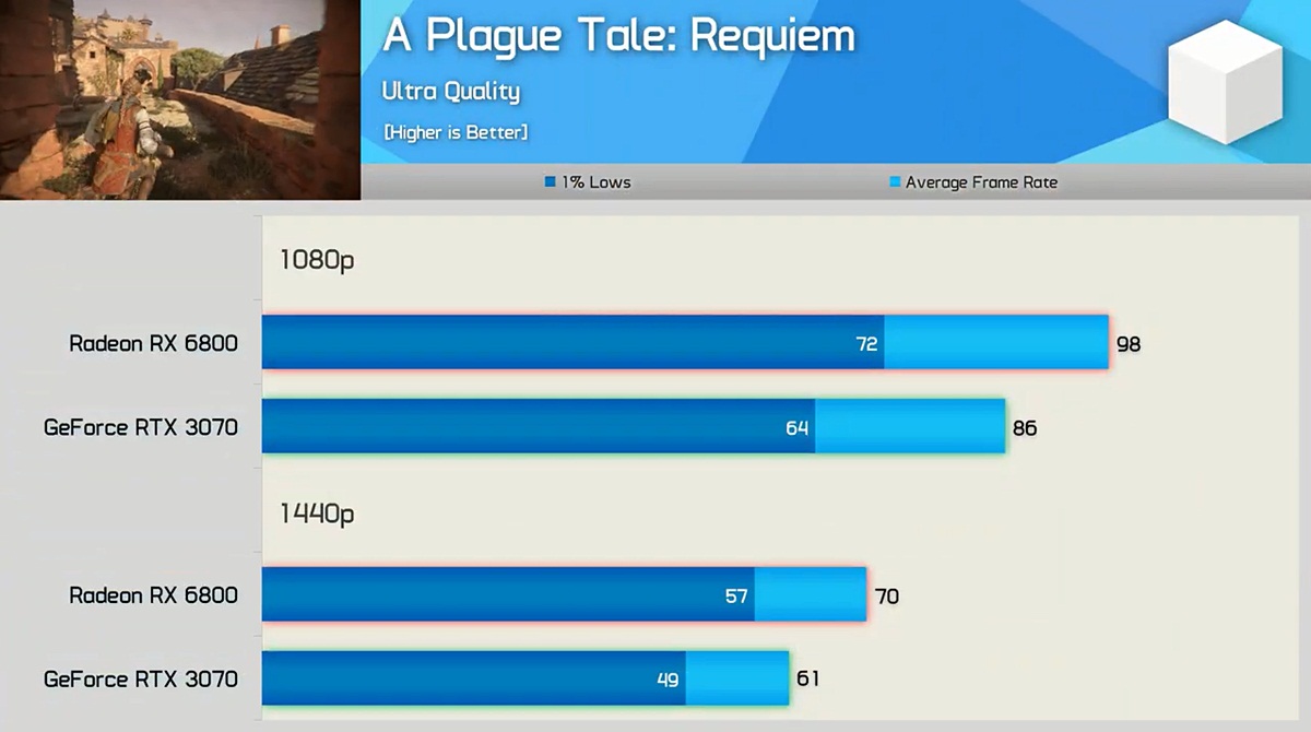 GeForce RTX 3070 vs Radeon RX 6800 @ A Plague Tale: Requiem