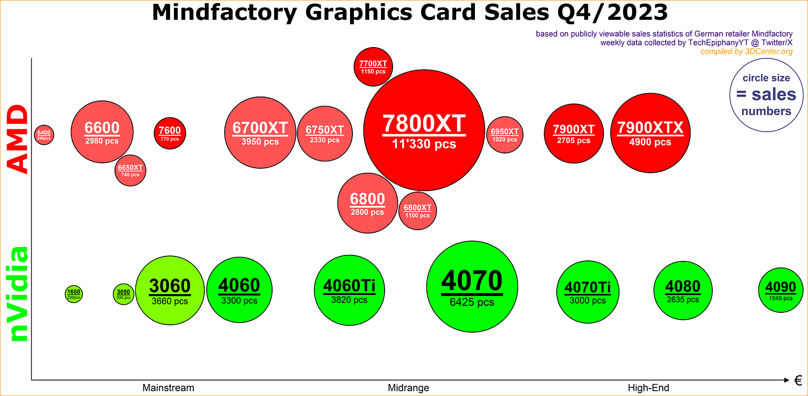 Grafikkarten-Absatz nach Modellen Mindfactory Q4/2023