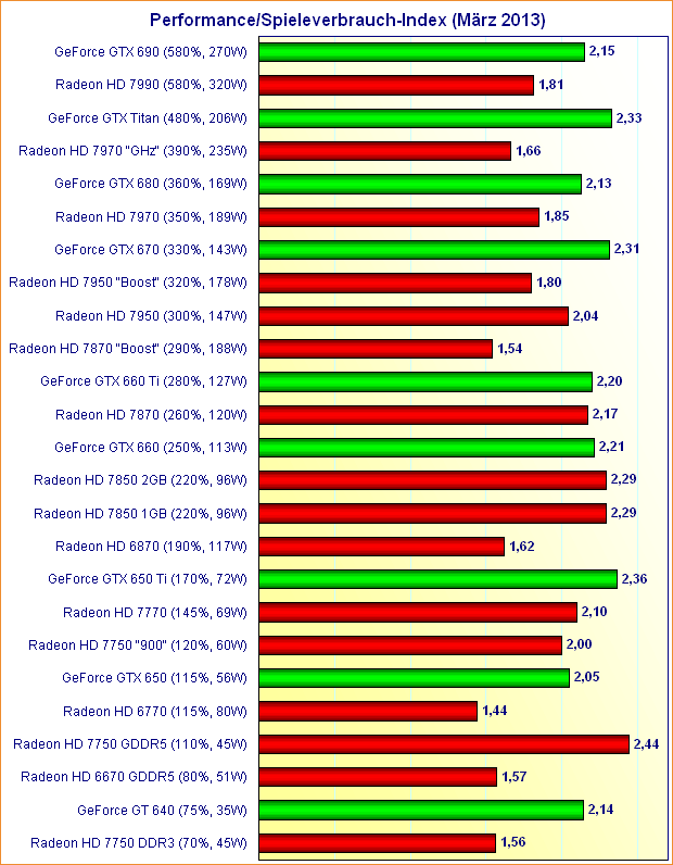 Grafikkarten Performance/Spieleverbrauch-Index (März 2013)
