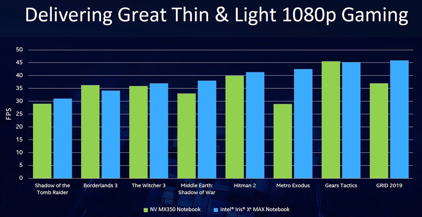 Intel-Benchmarks: Intel Iris Xe Max vs. nVidia GeForce MX350