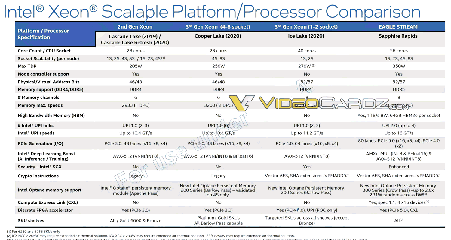 Intel Cascade Lake, Cooper Lake, Ice Lake-SP & Sapphire Rapids Spezifikationen