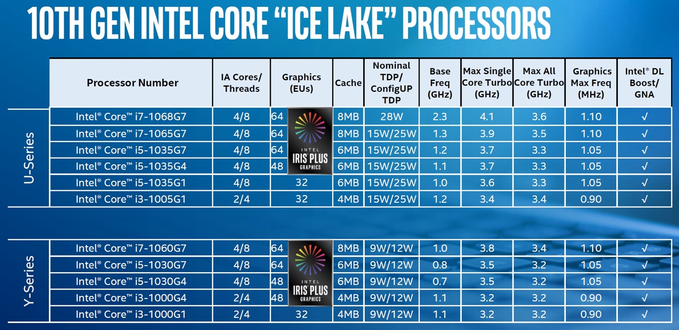 Intel "Ice Lake" Modell-Portfolio