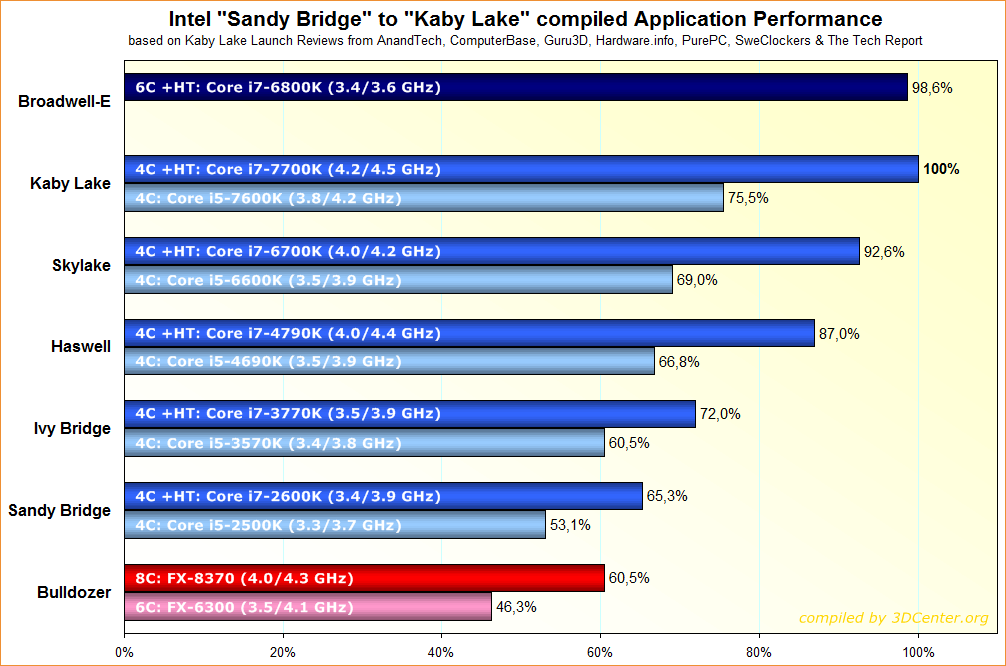 Intel-Prozessoren Anwendungs-Performance von "Sandy Bridge" zu "Kaby Lake"