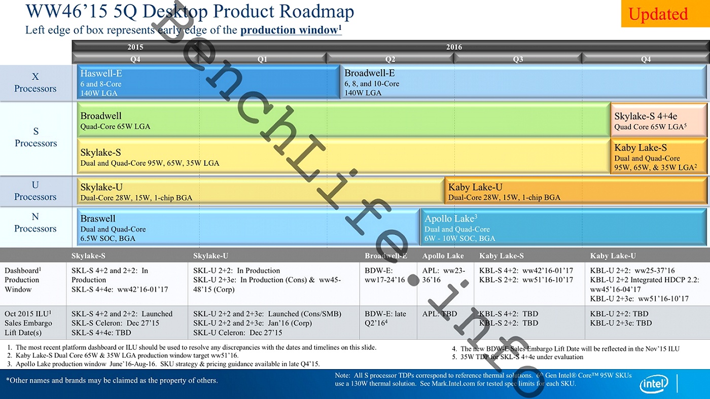 Intel Prozessoren-Roadmap Q4/2015 bis Q4/2016