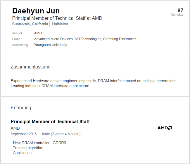 Linkedin-Profil von AMD-Mitarbeiter Daehyun Jun