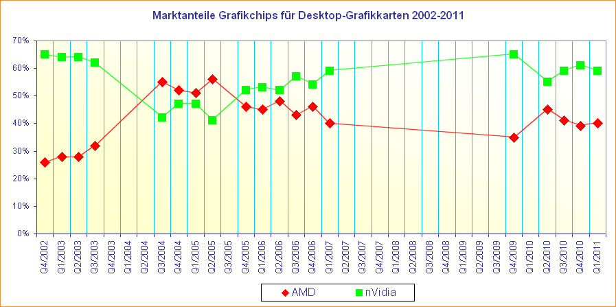 Marktanteile Grafikchips für Desktop-Grafikkarten 2002-2011