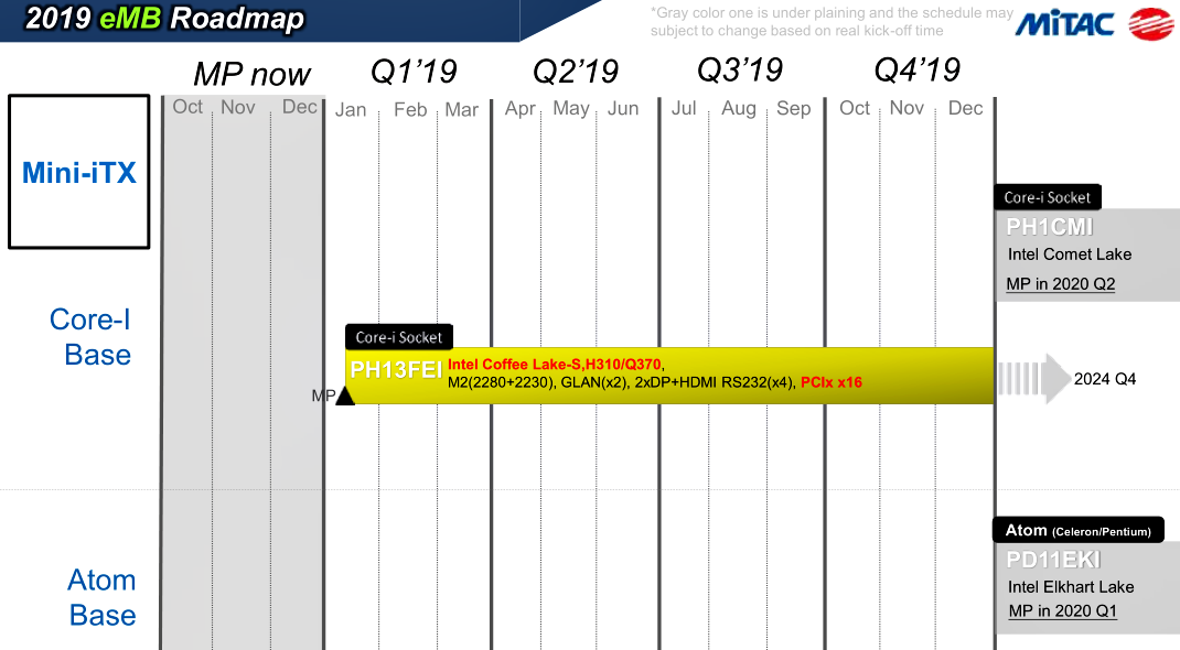 Mitac Embedded Mini-ITX Mainboard Roadmap 2019
