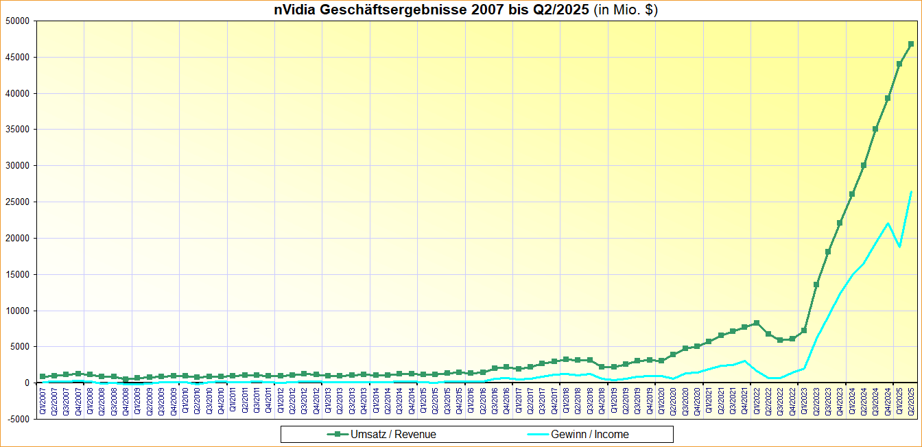 nVidia Geschäftsergebnisse 2007 bis Q2/2025