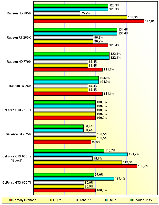 Rohleistungs-Vergleich GeForce GTX 650 Ti & "Boost", GTX 750 & 750 Ti, Radeon HD 7790 & 7850, R7 260 & 260X