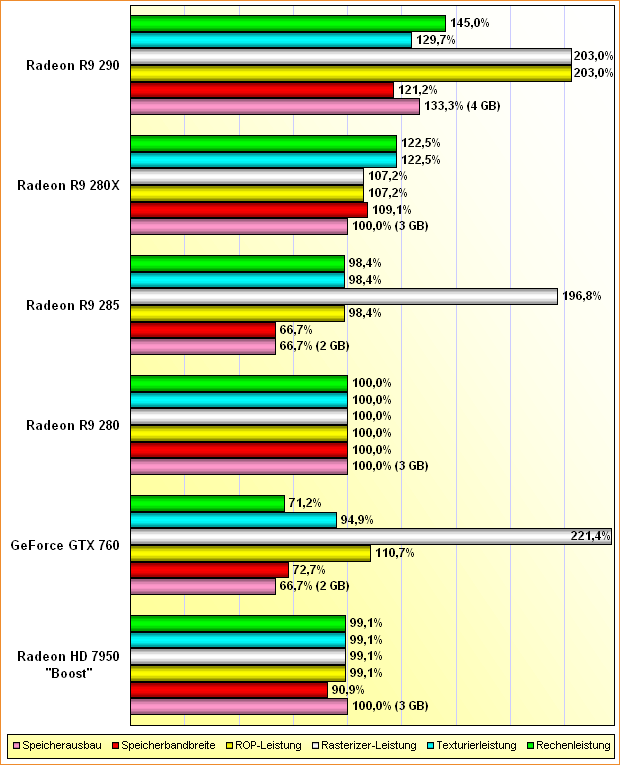 Rohleistungs-Vergleich Radeon HD 7950 "Boost", GeForce GTX 760, Radeon R9 280, 285 & 285X