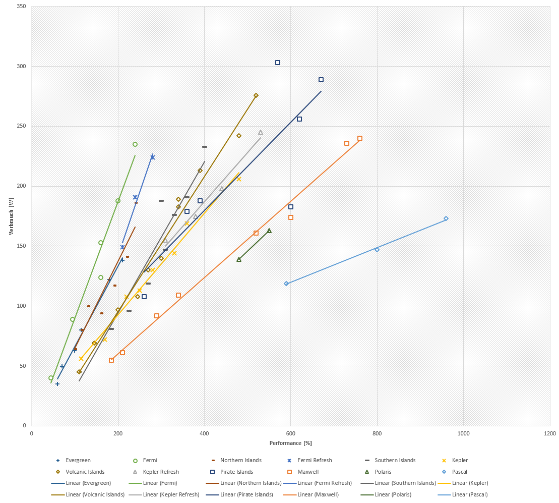 Stromverbrauchs-Effizienz von Evergreen & Fermi bis Polaris & Pascal