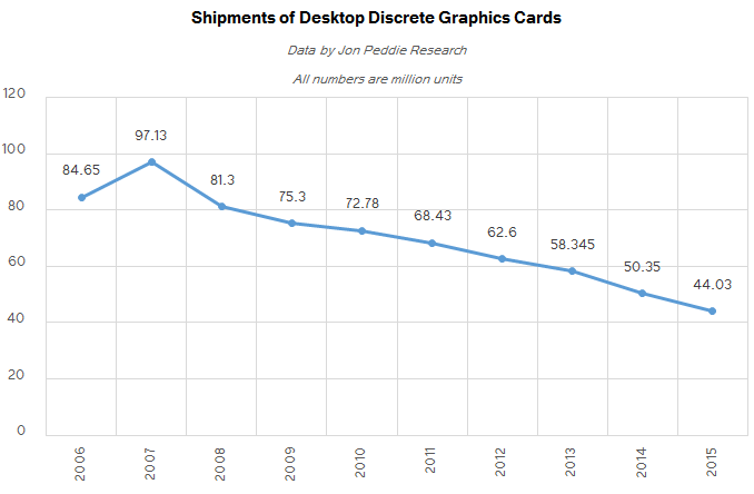 Verkaufszahlen Desktop-Grafikkarten 2006-2015 (jährlich)