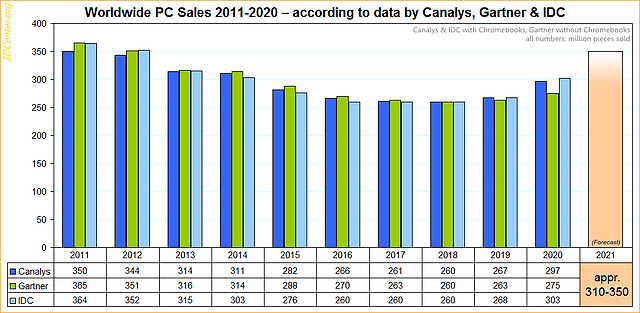 Weltweite PC-Verkäufe 2011-2020