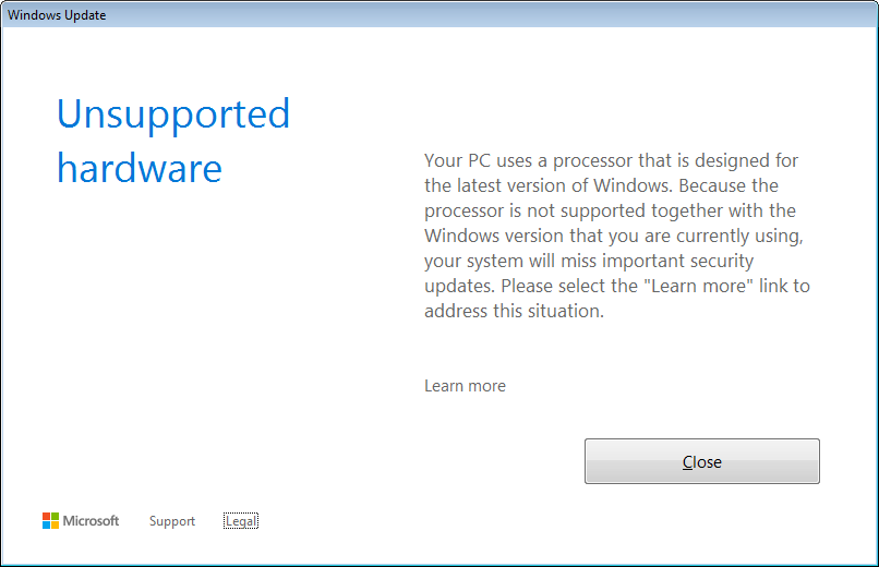 Windows 7/8.1: Fehlermeldung "Unsupported Hardware" nach dem Patchday April 2017
